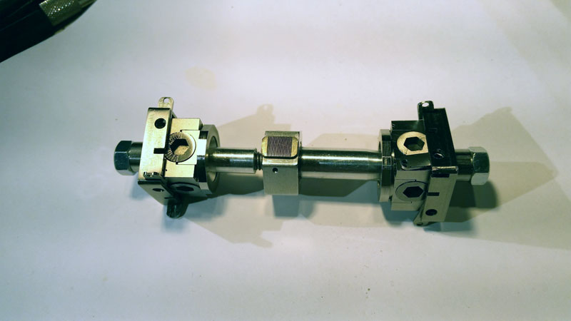- The Dynamic Ball Joint consists of a sphere with 2 crossing axis that are perpendicular to the threaded mount where the Dynamic Column is threaded on.. This takes the form of 4 Dowel pins that intersect the 4 adjustment knobs in a pocket in each knob that is off center and acting as a cam to manipulate the ends of the axis that pass through the center sphere. By rotating the adjustment knobs the vertical angle of the column can be modified to any angle in any direction up to 45 degrees. The Levers rotate worm gears to engage the adjustment knobs and act as a lock and fine adjustment to the column angle. The hole passing through the adjustment lever is eccentric to the diameter of the lever. This acts as a cam and engages the worm and drive gears when the lever is rotated 90 degrees.