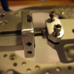 - The new Connecting Plate mounts the vertical slide for the hinge ball. The vertical is locked by screws on the side. The length is locked with hex nuts.